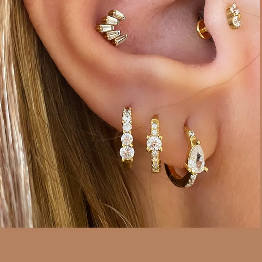 Set of three flat back earrings 8,6mm (Rounded Zircones)