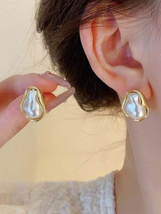 1 Pair Asymmetrical Faux Pearl Elegant & Unique Everyday Fashion Earrings