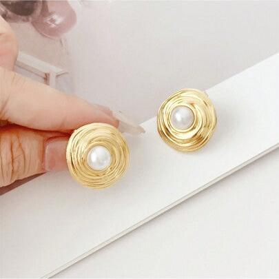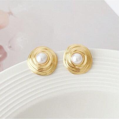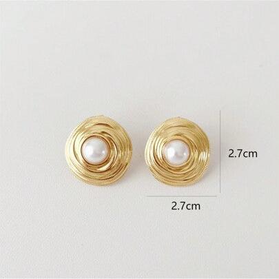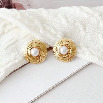 1 Pair Geometric Minimalist Style Fashionable Pearl Stud Earrings