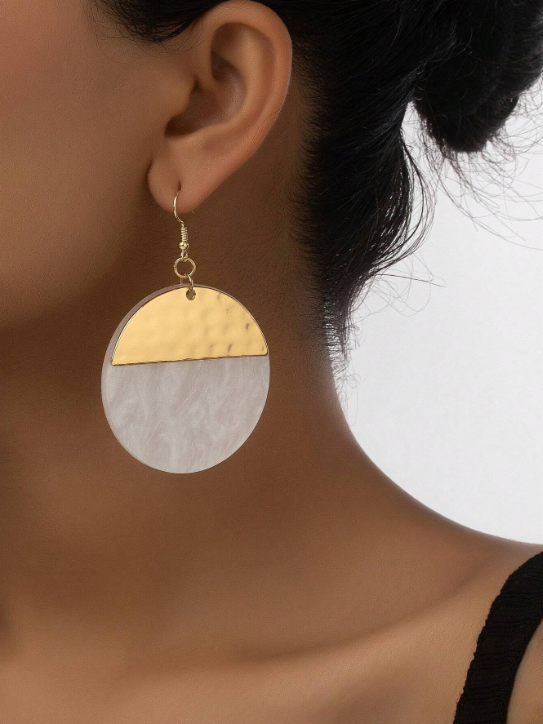 1pair Exaggerated Geometric Shaped Metal & Acetate Round Earrings