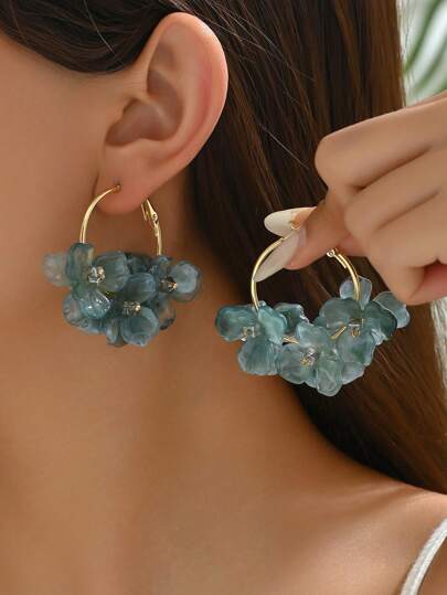 1pair Simple Exaggerated Geometric 3d Flower Earrings