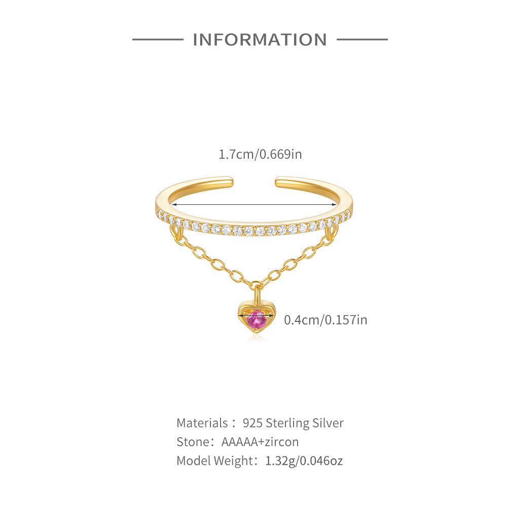 925 Sterling Silver INS Trend Purple Heart Zircon Tassel Ring Resizable