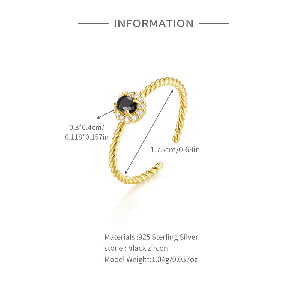 925 Sterling Silver Simple Geometric Black Zircon Ring Adjustable