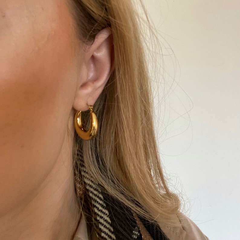 Take on a new level of daring with our Simple Gold Chunky Hoops! These gold plated hoop earrings add a bold touch to any outfit. Perfect as a gift for her, these hoops are a must-have statement piece for any risk taker. Dare to be different with our Simple Gold Chunky Hoops!